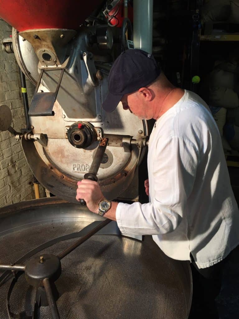 I have a number of roasters ranging from multi-barrelled sample roasters to a 90 kilos roaster. My favourite roaster by far is my direct flame Probat 22 kilo on which I have roasted for 25 years. It is so responsive and makes me feel connected to, and in total control of, the beans in the drum. I know every sound and squeak from her and she is completely reliable. The direct flame still gives IMO the most wonderful aromas and true development of the coffee bean. So many roasters have moved to hot air roasting, a mistake IMO.