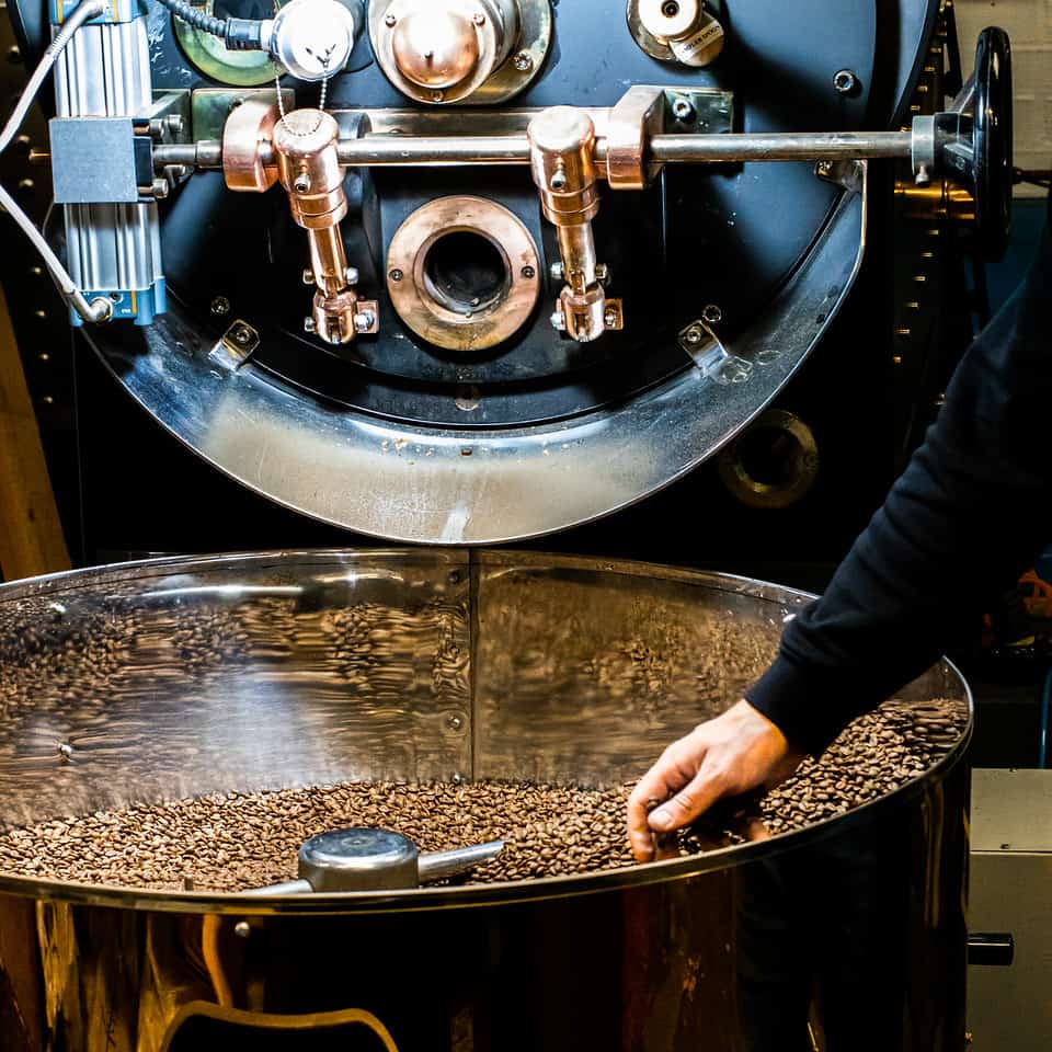 Our 10kg roaster is located in our coffee shop, it is used for all of our retail orders and our shop coffee.