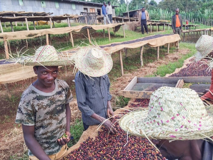 The coffee is grown under a natural forest where Ibrahim has beehives and some fruit trees. Ibrahim also buys cherry from over 300 outgrowers who all have small farms in the area. He keeps a list of outgrowers with their basic information which he uses to track deliveries and maintain traceability for his lots.